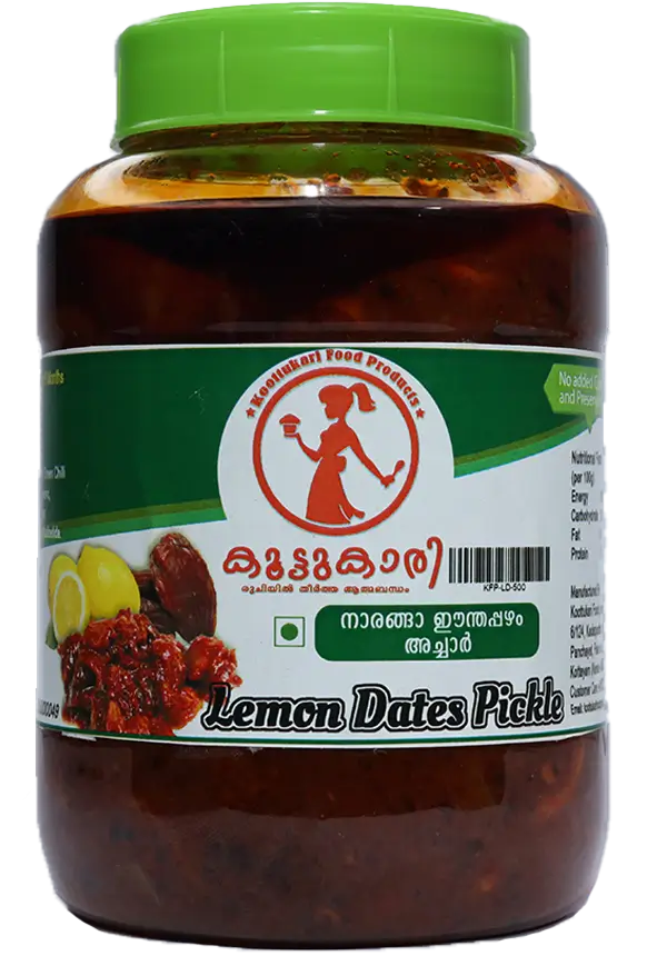Koottukari Food Products is the best pickle delivery shop in Kerala, India. We offer free delivery all over India. We provide a variety of non-vegetarian pickles: Fish Pickle online, Beef Pickle online, Anchovy or Natholi Pickle online, Chicken Pickle online. Our vegetarian pickle is very famous in North India and South Inda. Lemon and Dates Pickle online is the signature pickle from Koottukari Food like both veg and nonveg foodies.